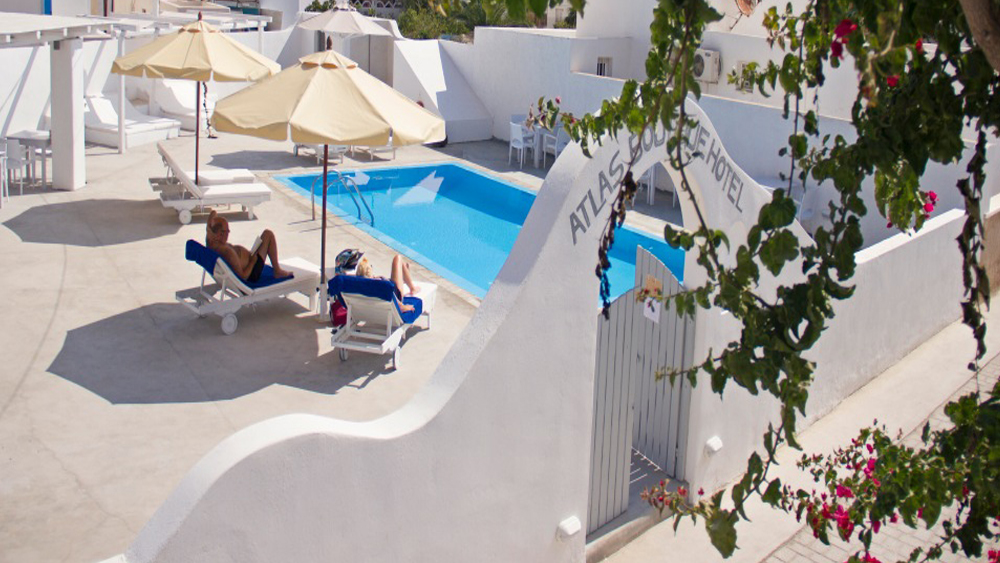 Atlas Boutique hotel 3* leži približno 30 m od središča Kamarija, 8 km od glavnega mesta Fira in 4 km od letališča. V celoti obnovljen manjši butični hotel ima skupno 14 sob, zajtrkovalnico in bar.