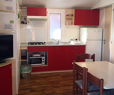 V neposredni bližini so v sklopu kampa sanitarni prostori z novimi umivalnicami in tuši. Mobilna hiška je v celoti opremljena, za udobno bivanje prinesite s seboj posteljnino in kopalniško perilo ter kuhinjske krpe. Klima, TV ..., v zimskem času je na hiško poskrbljeno za 2x radiator, 1x kalorifer in 1x klimo.