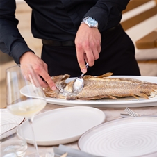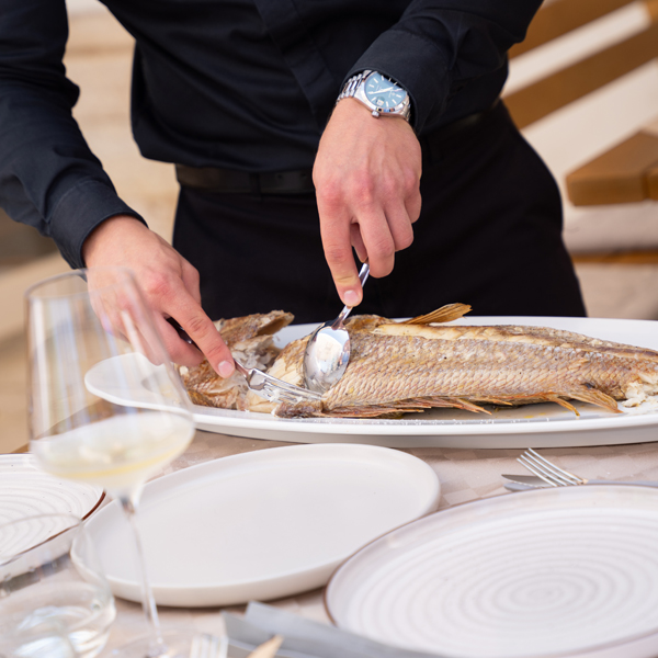 Gostje lahko uživajo v spektakularnem razgledu na Brionske otoke in čudovitih sončnih zahodih s terase hotelske restavracije. Hotelska restavracija ponuja zajtrk, kosilo (doplačilo) in večerjo. Streže jedi, ki so mešanica mediteranske in sodobne moderne kuhinje. Hotel ima tudi elegantno jedilnico. Hotel se nahaja v bližini plaže in restavracij. Fažana je znana po odličnem vinu in olivnem olju.