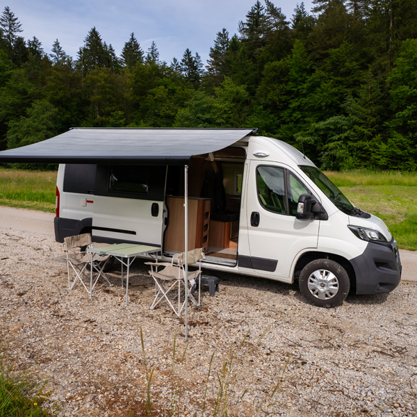 SUPER CENA za 4-dnevni najem kamperja Polde za max 3 osebe + zavarovanje + asistenca po celi Evropi + celotna kamping oprema (tenda, kuhinja, stoli, mize, pribor, krožnike in kozarce) + priprava kamperja!