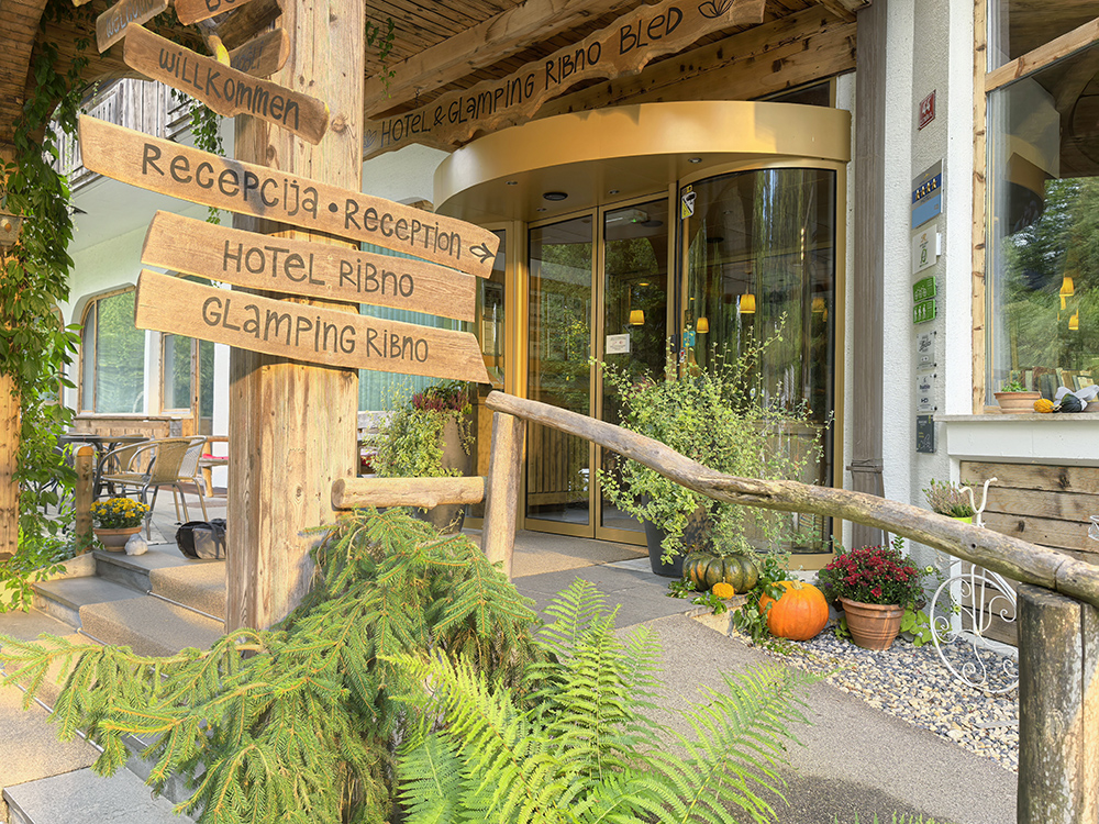 Hotel Ribno leži v neposredni bližini Bleda, v idilični gorenjski vasici, po kateri je dobil svoje ime. Njegova lega na robu smrekovega gozda, kjer lahko prisluhnete žvrgolenju ptic, navdušuje vse, željne miru in sprostitve v tesnem stiku z naravo. Hotel je odlična izhodiščna točka za pohodniške in kolesarske ture.