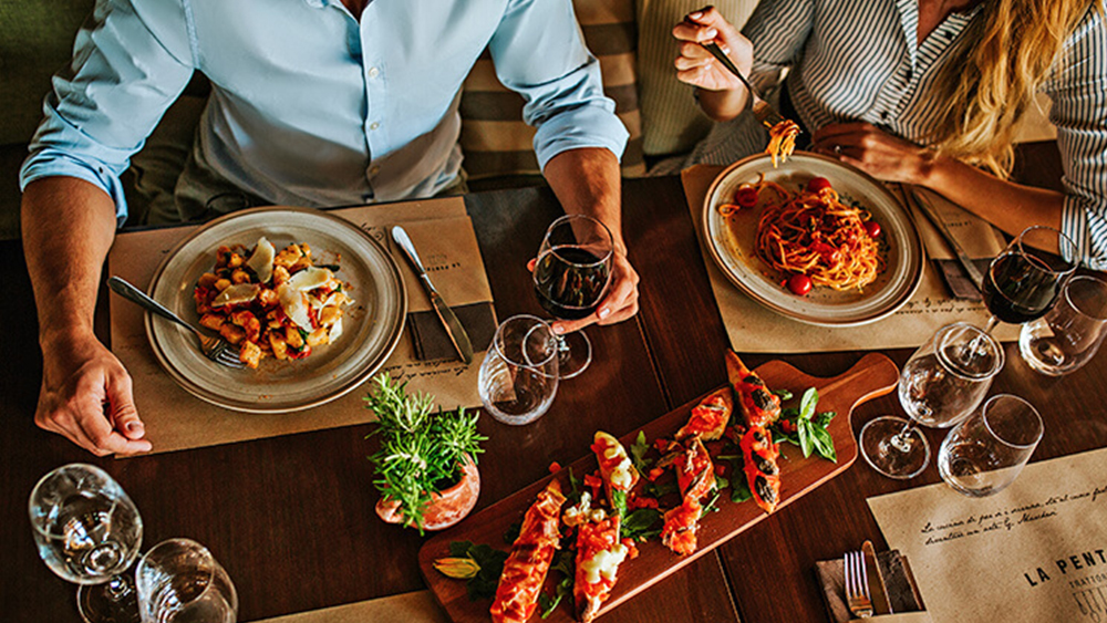 Restavracija Mediterraneo s pogledom na morje v hotelu Valamar Sanfior ponuja bogat samopostrežni zajtrk in večerjo ob show cookingu in različne tematske večere. Slovi po avtentičnih lokalnih, sredozemskih in mednarodnih okusih (italijanska, azijska, tex-mex itd). Ponuja različne kulinarične posebnosti kot so vegetarijanska prehrana, posebna prehrana za diabetike, Lunch box in ob doplačilu romantična večerja na posebni lokaciji. Vaše brbončice lahko ob doplačilu razvajate tudi v raznoliki ponudbi restavracije Oliva Grill, Black & Blue Steakhouse, Sundance beach club, Craft beer & grill in Lobby bar v hotelski avli.