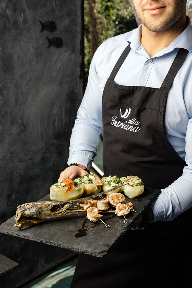 V manjšem družinskem objektu Wellness Villa Istriana ponujajo tudi ribje večerje po naročilu iz dnevnega ulova rib, sami tudi gojijo ostrige in školjke, lastnikov sin, ki je profesionalni kuhar, pa za vas pripravlja sveža živila in dnevne menije, ki spodbujajo uživanje v različnih kombinacijah okusov in edinstvena predstaviitve hrane. Jedilnik je sezonski, navdihujejo ga sestavine, temelji pa na kombinaciji tradicionalne istrske kuhinje z elementi moderne kuhinje.