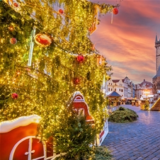 Odhod avtobusa iz Slovenije in vožnja mimo Dunaja proti Češki. V zlato mesto bomo prispeli v poznih dopoldanskih urah. Čas za raziskovanje mestnega vrveža, ki mu dajejo pečat poulični umetniki, dišeče klobasice in inovativni prodajalci vstopnic in razne predbožične krame. Staro mesto je najlepše ravno v predbožičnem času, ko je skrbno okrašeno in večina večjih trgov zasedejo lepo okrašene stojnice z raznovrstno in predvsem dišečo ponudbo. Staromestni trg z starodavnim dvojnim stolpom Tynske cerkve in mestna hiša z legendarno Astronomsko ter pravljično okrasitvijo je pozimi naravnost očarljiv. Omamni vonji po klobasicah, praški šunki, trdelniku in kuhanem vincu pa vabijo k adventnim prigrizkom.
