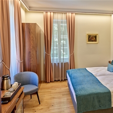Moderno opremljene sobe nudijo telefon, LED TV, sef, minibar, individualno klimatsko napravo (hlajenje/gretje), delovno in klubsko mizo, počivalnik, grelnik vode za pripravo toplega napitka, kopalnico (tuš, WC s higiensko prho), sušilnik za lase, antialergijsko posteljnino iz 100% bombaža in WiFi.