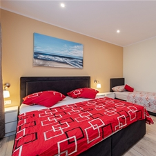 Apartma meri 55m2 in se nahaja v 2. nadstropju. Vsi apartmaji so sodobno opremljeni in nudijo zasebno kopalnico kuhinjski prostor, dnevni prostor, LCD televizor z ravnim zaslonom, klimo in brezžični internet. Apartmaji imajo tudi balkon z razgledom na morje.