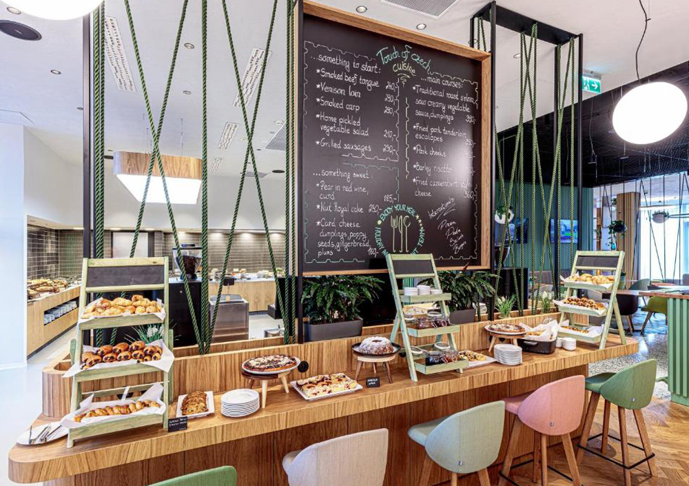 V restavraciji Esprit z zimskim vrtom in teraso strežejo sodobno češko in mednarodno kuhinjo. Bistro Délicatesse z letno teraso je idealen za hiter zajtrk, odličen meni za kosilo, sveže solate, sendviče ali okusne domače sladice.