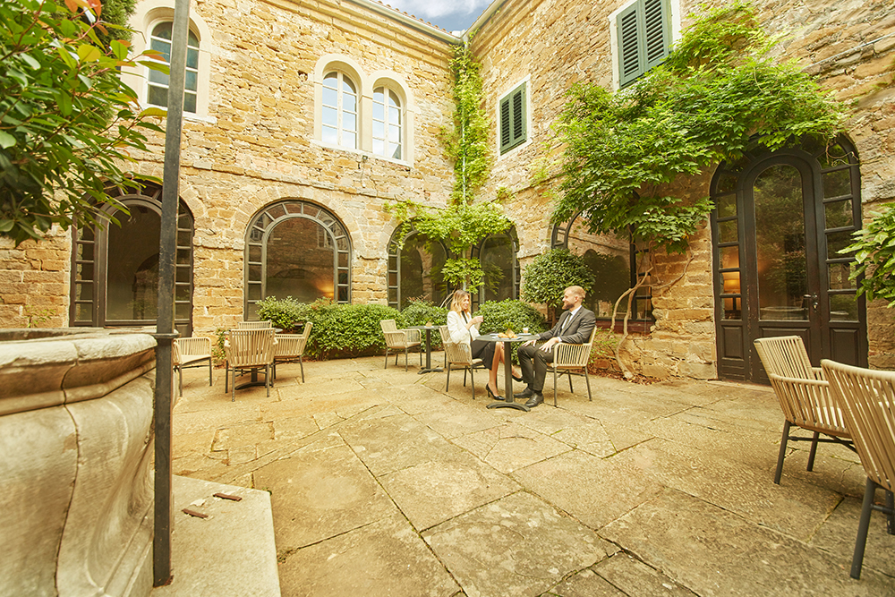 V celoti prenovljen nekdanji benediktinski samostan danes ponuja vse udobje hotela **** s 23 sobami ter luksuzno urejenim apartmajem. Sobe so opremljene s pohištvom v klasičnem stilu in standardno opremo (SAT-TV, telefon, mini bar, fen, sef, klima, internet). Imajo pogled na park ali atrij z vodnjakom iz leta 1835, ki kar vabi v svojo senco, kjer se lahko v duhu preteklosti prepustite domišljiji...