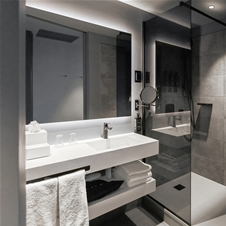 Monokromatska soba je na voljo v sivi barvi. No, razgled na mesto vas bo po drugi strani razvajal s celo mavrico barv. Ima zakonsko posteljo ali dve ločeni postelji, kopalnico s kadjo ali prho, SMART TV, grelnik za vodo z izbiro čajev in kave in razgled na mesto. Primerna je za največ dve osebi.