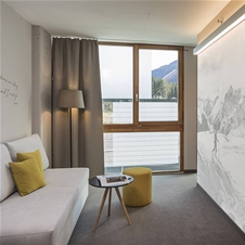 Sport Space – vhodni prostor, kjer lahko shranite športno opremo (kolesa/smuči/snežne deske) s sušilcem za čevlje, prha/stranišče, spalnica z garderobno omaro, toaletno mizico z ogledalom, stolom, oblazinjeno posteljo (180 x 200 cm), nočnima omaricama in bralnimi lučkami, raztegljiv kavč v dnevnem prostoru (140 x 200 cm), klubska mizica, stoječa svetilka, TV z ravnim zaslonom, zatemnitvene zavese. Največ štiri osebe – ločena spalnica in dnevni prostor z raztegljivim kavčem in sefom.