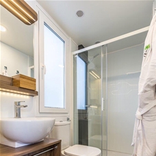 Mobilna hiška vsebuje popolnoma opremljeno kuhinjo, dnevno sobo z raztegljivo posteljo za 2 osebi, sobo z zakonsko posteljo, sobo z dvema posteljama in tretjim ležiščem, dve kopalnici s tušem in toaleto, klimatsko napravo, SAT TV in sef, pokrito teraso z mizo, stoli in ležalniki. Ob mobilni hiški je na voljo tudi brezplačno parkirišče.
