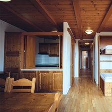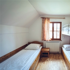 DVOSOBNI APARTMA 10+1: polno opremljena kuhinja (steklo-keramična plošča, pečica, grelnik vode, hladilnik z zamrzovalnim predalom), dnevni prostor z jedilnim kotom (sedežna garnitura, ki se razprostre v ležišče za eno osebo in dodaten pograd za 2 osebi), spalnica z zakonskim ležiščem in pogradom, druga spalnica z dvema pogradoma (skupno torej v sobi bivajo 4 osebe), ena kopalnica s tušem in toaleto ter druga kopalnica s kadjo in toaleto, dodaten wc, prostoren balkon ali terasa.