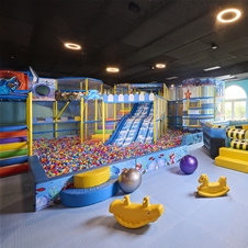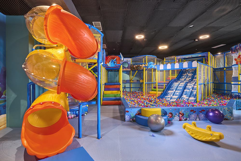 Otroška igralnica je velika 210 m2, v igralnici pa se lahko otroci z animatorji zabavajo na različnih delavnicah, si ogledajo film v otroškem kinu, igrajo igrice v game sobi in skočijo v velik bazen s kroglicami. Zunaj jih čaka še veliko igrišče z igrali.