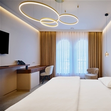 Hotel svojim gostom ponuja 45 stilsko opremljenih sob, od tega 2 suiti z masažno kadjo, 4 enoposteljne ter 24 dvoposteljnih sob z možnostjo dodatne ležišča. 15 dvoposteljna soba je tudi kategorije 'Superior Deluxe', katere so popolnoma nove in modernega videza. V vseh sobah: TV, klimatska naprava, telefon, sef, dostop do interneta, predel za sedenje, kopalnica.