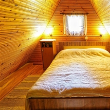 V hiški je spalnica, kopalnica s tušem, kuhinja s hladilnikom in pomivalnim strojem, skupni dnevni prostor z jedilnico. Hiška ima tudi centralno gretje na drva in možnost gretja na IR panele.