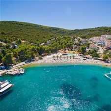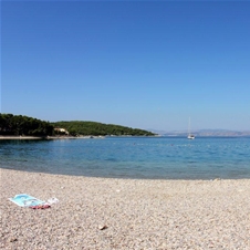 Prodnata plaža je od apartmajev oddaljena le 200 m. Obdaja jo borov gozdiček in ima pogled na uvalo Supetar. Osvežite pa se lahko v barih, ki se nahajajo ob plaži.