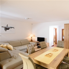 Vsaka hiša ima dva apartmaja z lastnim vhodom, ki se nahajata v prvem nadstropju ali pritličju. Apartma je namenjen nekadilcem in hišni ljubljenčki niso dovoljeni. Apartma ima kuhinjo, dnevno sobo z raztegljivim kavčem, 2 ločeni spalnici (ena spalnica z zakonsko posteljo, ena spalnica z dvema ločenima posteljama), kopalnica s pralnim strojem, terasa.