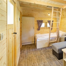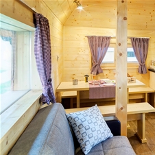 V hišici lahko bivajo 4 osebe. Sestavljajo jo bivalni del z zakonsko posteljo in raztegljivim kavčem, spalnica z zakonsko posteljo, kuhinjski del, kopalnica in terasa. Za petčlansko družino obstaja možnost dodatnega ležišča.