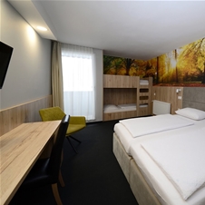 • Doplačila za otroke: do 5,99 let na lastnem ležišču 10 €/noč; 6-11,99 let 15 €/noč; 12-17,99 let ali odrasla oseba 20 €; kapaciteta sobe sta 2 pomožni ležišči v štiri posteljni sobi.