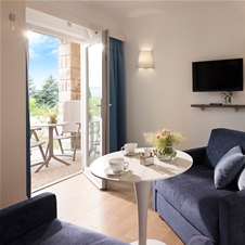 Vsaka suita ima spalnico z 2 posteljama in udoben kavč v predprostoru. Nadstandardno opremljene suite se nahajajo tik ob morju. Vse sobe nudijo garderobno omaro, klimatsko napravo, TV in predel za sedenje. Vse imajo izhod na balkon ali teraso, na kateri se lahko spočijete in se nastavite sončnim žarkom.