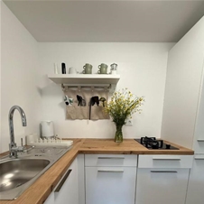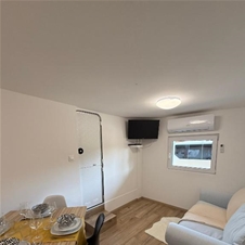 Drugi apartma je namenjen dvema osebama. Vključuje spalnico z zakonsko posteljo, popolnoma opremljeno kuhinjo s hladilnikom, štedilnikom in posodo ter dnevni prostor s televizijo. Tako kot v večjem apartmaju sta tudi tukaj na voljo klimatska naprava in lasten Wi-Fi, pred vhodom pa terasa z vrtno garnituro in žarom za prijetne trenutke na prostem. Tudi ta apartma uporablja privatni WC, ki si ga deli s prvim apartmajem.