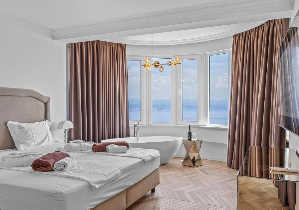 SUPER CENA za luksuzen oddih za do 3 osebe v apartmaju 5* v Top Apartments Opatija v Opatiji: 2x nočitev v manjšem apartmaju + uporaba zunanjega ogrevanega bazena + 2-urna uporaba savne + pijača dobrodošlice + uporaba zunanjega žara + zabavne vsebine + parkiranje!