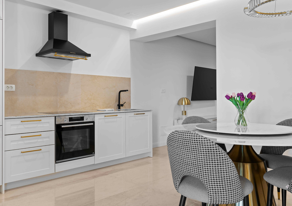 Popolnoma opremljena kuhinja vam omogoča, da razvijete svoje kulinarične spretnosti in pripravite okusne obroke. Ne glede na to, ali želite pripraviti preprost zajtrk ali svečano večerjo, boste v naši kuhinji našli vse, kar potrebujete. Uživate lahko tudi v našem ogrevanem infinity bazenu in se sončite na našem prostornem prostoru za sončenje. Ne glede na to, ali potujete z družino ali prijatelji, so naši apartmaji zasnovani tako, da zadovoljijo vaše individualne potrebe.
