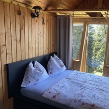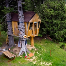 Kompletno stilno opremljena lesena hiška na drevesu, 3 m od tal, 10 m2. Primerna za 2 osebi (+1 otrok) za nekajdnevno bivanje.