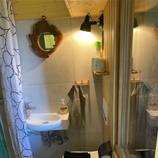 Toplotno izolirana s folijo Alu Sky, ogrevan dovod vode. Ogrevanje z 2x električnim IR stropnim panelom.