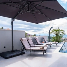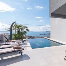 Dobrodošli v povsem novi vili Blue Horizon, ki se nahaja na vrhu mirnega hriba s pogledom na bližnje mesto Split, morje in otoke. Vila se nahaja na vrhu hriba, obdana z borovim gozdom in s pogledom na najlepši del srednje Dalmacije. Vila ima velik ogrevan bazen, ki je obdan s keramično tlakovano teraso, kjer je žar, miza s stoli pod velikim senčnikom, zunanji tuš, prostor za sprostitev in ležalniki.