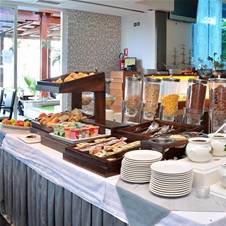 Vsako jutro je v hotelu San Antonio (20 m stran) na voljo bogat samopostrežni zajtrk. V restavraciji hotela San Antonio strežejo domače in mednarodne jedi.