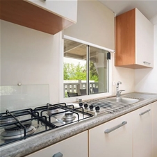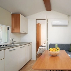 Standard mobilna hiška z 2 spalnicama: 24 m2, Postelje: 4+1 (največ 4 odrasli in 1 otrok), spalnica s francosko posteljo, spalnica s 3 enojnimi posteljami (2x dolžina 1,90 m, 1x dolžina 1,70 m), kuhinja in dnevna soba, kopalnica s tušem, terasa 15 m2.
