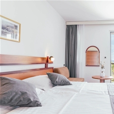 SUPERIOR: dvoposteljna soba, 24 m²; zakonska ali ločeni postelji, kopalnica s kadjo, sušilec za lase, SAT TV, brezplačen WiFi, klima, sef, telefon, balkon, dodatno ležišče (raztegljiv fotelj 80 × 200, primerno za otroka). Pogled na morje.