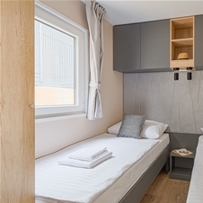 - Ugodnosti za otroke: 12,50 €/osebo/dan za otroka do 11,99 let; 25 €/osebo/dan za dodatno osebo nad 12 let. V hiški je lahko največ 5 oseb.