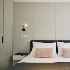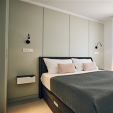 Moderen apartma z eno spalnico in balkonom ali teraso, velikosti 38 m², dostopen izključno po stopnicah. Vsak apartma je klimatiziran, ima TV z ravnim zaslonom in satelitskimi programi, sef, telefon ter visokohitrostni WI-FI internet. Spalnica z zakonsko posteljo (160x200 cm) je ločena od dnevnega prostora. Dnevna soba ima izhod na opremljen balkon ali teraso, obrnjeno proti morju. Na raztegljivem kavču (160x200 cm) v dnevni sobi je mogoče namestiti dodatni 2 osebi (z doplačilom).