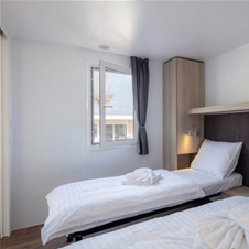 Popolna izbira za brezskrben oddih ob morju! Ta prostorna mobilna hišica s površino 40 m² ponuja udobje in zasebnost, ki ju potrebujete za popolne počitnice. Z dvema ločenima sobama in dvema kopalnicama je idealna za do 4 + 1 osebo, kar omogoča prijetno bivanje za družine ali manjše skupine.