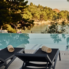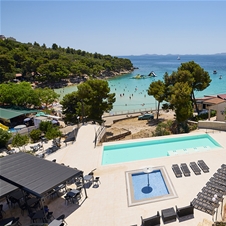 Obkrožen z borovci, intimen in oddaljen od vrveža najbolj poznane murterske plaže Slanica, vam bo hotelski bazen ponudil zadovoljstvo in radost brezskrbnega oddiha. Sproščujoč dizajn bazena bo zadovoljil še tako zahtevne goste in pravega sladokusca vodne čarovnije. Za brezskrbno pravo morsko osvežitev je bazen napolnjen s pretočno morsko vodo, ki se dovaja z oddaljenosti 400 metrov, s čimer je zajamčena visoka higienska varnost.
