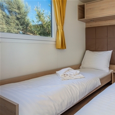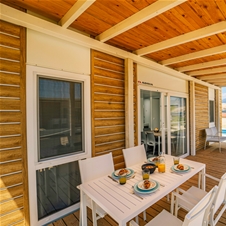 Sylva Holiday Home z bazenom je prostorna in sodobno opremljena mobilna hiška, velika 38 m², z dodatno pokrito teraso velikosti 24 m², ki nudi popoln prostor za sprostitev na svežem zraku. Hiška ima dve spalnici in dve kopalnici ter lahko sprejme do 4 odrasle osebe in 1 otroka.