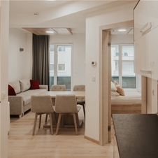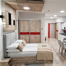 Luksuzni apartmaji in sobe hotela vam ponujajo nepozabno doživetje, pa če potujete sami, z družino ali ste na poslovnem potovanju. Vse sobe in apartmaji imajo ploski televizor s kabelskimi kanali, wi-fi, zasebno kopalnico s sušilnikom za lase, sef in ostalo opremo, ki vam je na voljo v času bivanja. Vsi apartmaji imajo tudi kompletno opremljeno sodobono kuhinjo. V sklopu ponudbe vam hotel zagotavlja brezplačno mesto v garaži, ki je pod videonadzorom. V objektu se streže samopostrežni zajtrk, pri katerem se pustite presenetiti inovativnosti in kreativnim jedem hotelskih kuharjev.