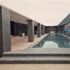 Notranji bazen z velikimi okni zagotavlja obilico naravne svetlobe, sprostitvene cone ob njem pa omogočajo popoln počitek po plavanju.