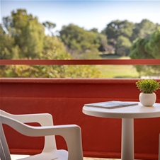 Klimatizirana, 19 m2 velika soba ima balkon s pogledom na park, kopalnico s kadjo in sušilnikom za lase in SAT TV.