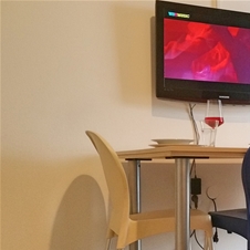 Apartma je skupaj s teraso velik 70 m2, nahaja pa se v 1. nadstropju. V njem je spalnica z zakonsko posteljo, dnevna soba z raztegljivim kavčem in televizijo, kopalnica in popolnoma opremljena kuhinja.