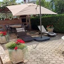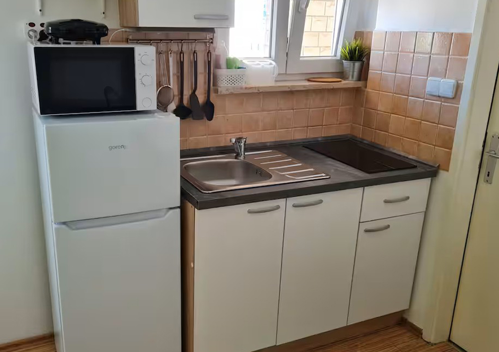 • Apartma nima balkona, ima pa pred vhodom mizo in tri stole, kjer gosti lahko sedijo.