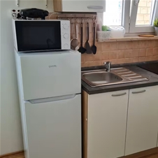 • Apartma nima balkona, ima pa pred vhodom mizo in tri stole, kjer gosti lahko sedijo.