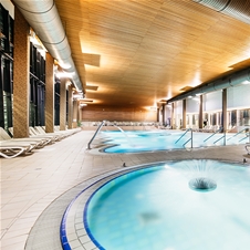 Potopite se v rajski wellness bazen in uživajte v objemu vodnih mehurčkov in podvodnih masaž, posončite svoje telo na posebnih vodnih posteljah v bazenu ob zvoku vodne amfore z doživetjem blagodejnih učinkov termomineralne vode. Bazenski kompleks elegantne in brezčasne lepote je obogaten z naravno senco košatih prekmurskih dreves.