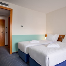 Dvoposteljna soba (25 m²) ima ločeni postelji (90 x 200 cm), ki ju je mogoče združiti v zakonsko ležišče, pisalno mizo, klimatsko napravo, TV z ravnim zaslonom in kopalnico s kadjo. Vse sobe imajo tudi raztegljiv kavč (130 x 190 cm), primeren za 2 otroka do 11,99 let. Minimalna zasedenost: 1 oseba / Maksimalna zasedenost: 2 odrasla in 2 otroka do 11,99 let.