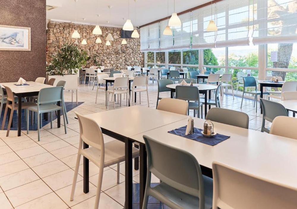 Gostje lahko uživajo v raznoliki all inclusive ponudbi, ki vključuje bogate samopostrežne obroke. Zajtrki ponujajo širok izbor svežega peciva, sadja, mlečnih izdelkov in toplih jedi, medtem ko kosila in večerje navdušujejo z izbiro mesnih, ribjih in vegetarijanskih specialitet. Poseben poudarek je na lokalnih dalmatinskih jedeh, kjer pridejo do izraza sveže ulovljene ribe, morski sadeži, oljčno olje in aromatična zelišča. Gostje lahko okušajo tradicionalne jedi, pripravljene po domačih receptih, pa tudi mednarodne klasike, ki zadovoljijo še tako raznolike okuse.