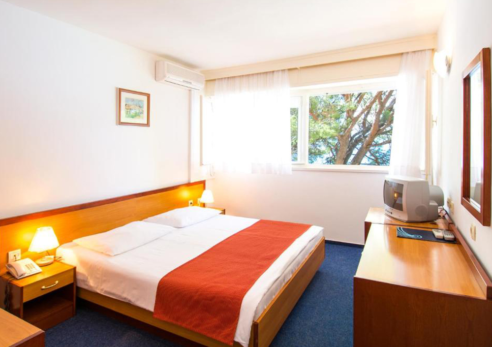 Standard dvoposteljna soba je udobna in funkcionalno zasnovana nastanitvena enota, primerna za pare ali posameznike, ki si želijo prijetnega bivanja ob morju. Soba ponuja vse osnovne udobnosti za sproščujoč dopust, vključno z udobno zakonsko ali dvema ločenima posteljama, zasebno kopalnico, klimatsko napravo ter TV. Svetel in preprost interier ustvarja prijetno vzdušje za počitek po aktivnem dnevu na plaži ali raziskovanju okolice.