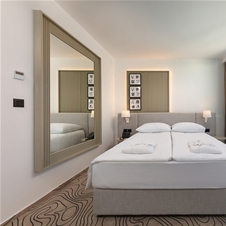 Sproščujoči trenutki v dvoposteljni sobi z balkonom ali francoskim balkonom in čudovitim pogledom na morje. Kakovostna ležišča poskrbijo za prijeten spanec in vam dajo dodatno energijo za raziskovanje čudovitih Vodic. Na pustolovščino se pripravite v sodobno opremljeni zasebni kopalnici.