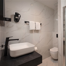 Razkošno udobje za vse, ki želijo doživeti čim več. Odkrijte prostorno sobo s pogledom na čudovito hrvaško naravo, opremljeno z udobno zakonsko posteljo ali ločenima posteljama ter možnostjo dodatnega ležišča za posebne goste. Uživajte v elegantni kopalnici, ki ponuja vse za popolno sprostitev.